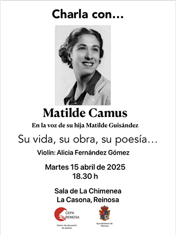 El Centro de Educación Permanente de Adultos de Reinosa (CEPA), en colaboración con el Ayuntamiento de Reinosa y el Conservatorio de Música de Reinosa, presenta una charla-recital sobre la obra de la poeta cántabra Matilde Camus.