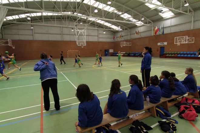 El pabellón municipal acogió el primer partido en casa de los equipos femeninos de la Escuela de Baloncesto de Campoo de Enmedio.