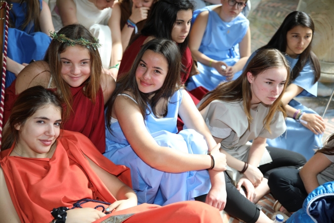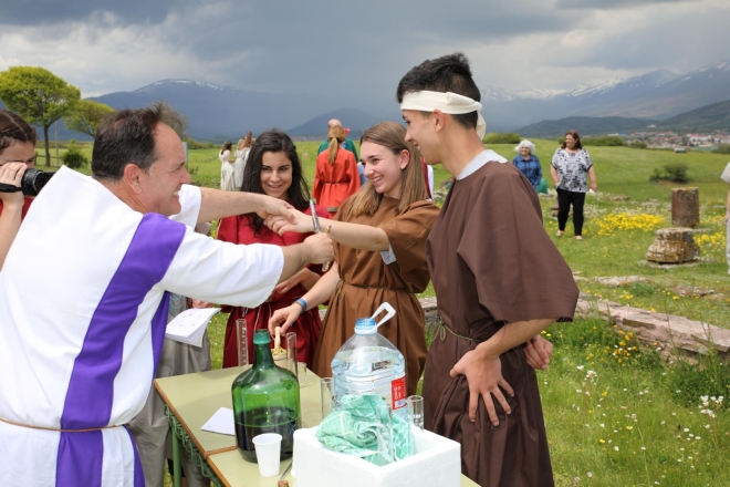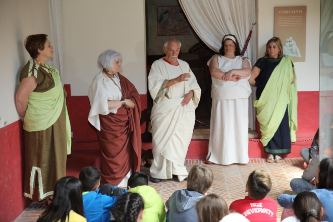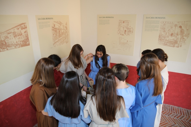 El lunes 21 de mayo los alumnos y alumnas de cuarto de ESO y sexto de Primaria del colegio San José de Reinosa, acompañados de once profesores, se desplazaron hasta la Domus de Julióbriga para desarrollar el proyecto ‘Mi Aula es una Domus’, realizado durante este curso con el propósito de trabajar las distintas materias de 4º de la ESO cambiando el aula por una domus romana, basando el aprendizaje en juegos y talleres. Fotos: Vive Campoo/Manuel Estébanez.