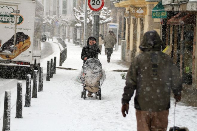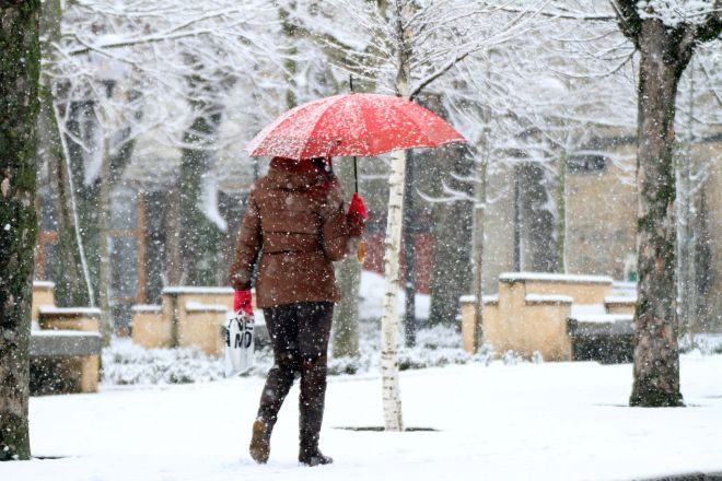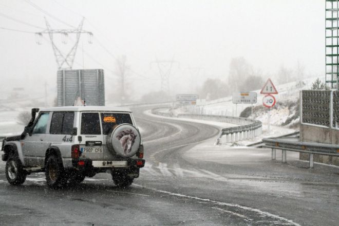 Vuelve a nevar en Campoo. El suelo se cubre y la nieve dificulta la circulación en los puertos de montaña