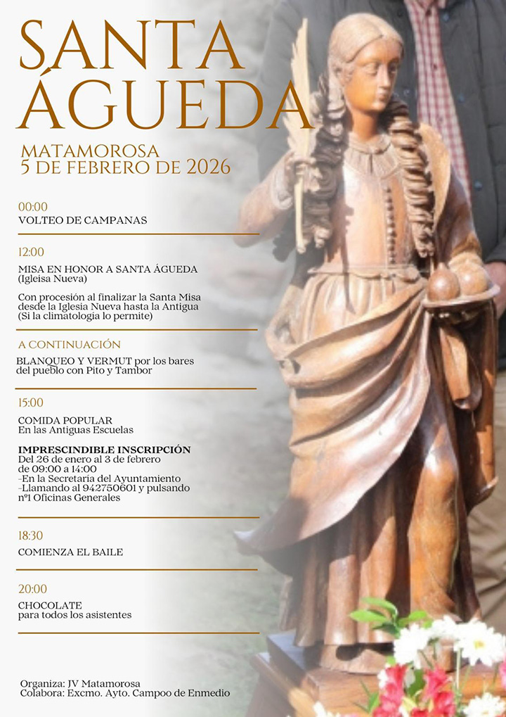 Matamorosa se prepara para celebrar, el miércoles 5 de febrero de 2026, la tradicional festividad de Santa Águeda "La Celliscona", una jornada cargada de actos religiosos, música, convivencia y actividades populares dirigidas a vecinos y visitantes.