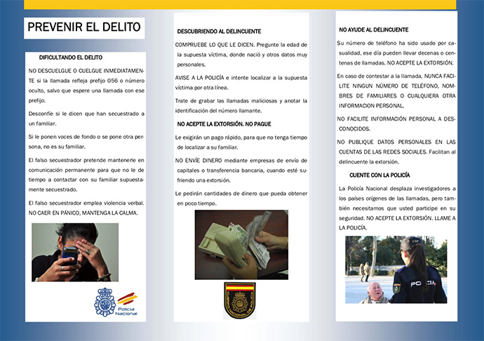 En estos casos, lo más importante además de mantener la calma sería NO PAGAR, COLGAR y LLAMAR AL 091, tratando de aportar datos como número llamante y acento de la persona que llama.