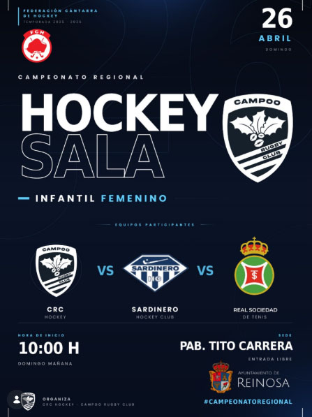 La ciudad de Reinosa se convertirá este domingo, 26 de abril, en el epicentro del hockey base cántabro con la celebración del Campeonato Regional Infantil Femenino de Hockey Sala. El evento tendrá lugar en el Pabellón Tito Carrera a partir de las 10.00 horas y se prolongará durante toda la jornada, hasta aproximadamente las 17.00 horas.