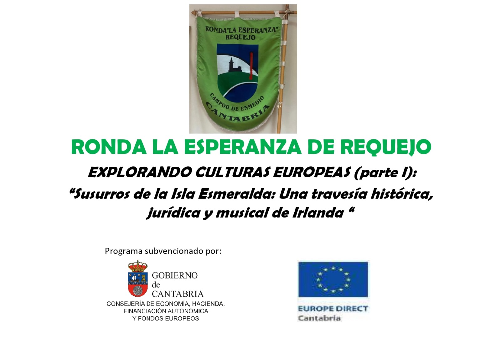 Organizado por La Ronda La Esperanza de Requejo y subvencionado por la Dirección General de Fondos Europeos del Gobierno de Cantabria, el programa invita a descubrir Irlanda a través de su historia, su tradición jurídica y, sobre todo, la fuerza de su música y folclore.